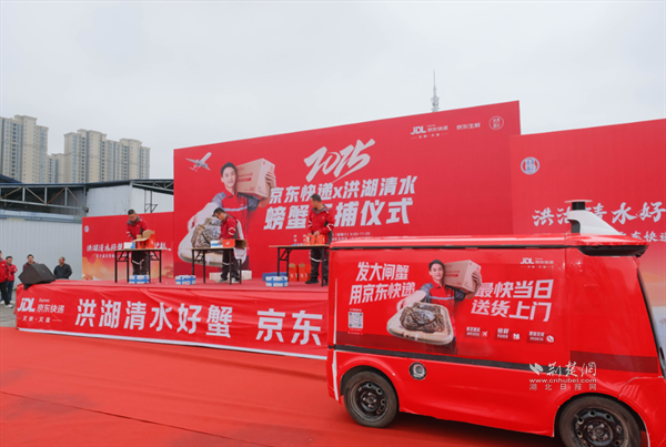 開捕現(xiàn)場,首批出水的洪湖大閘蟹經(jīng)無人機轉(zhuǎn)運至京東快遞攬收點,快速完成專業(yè)打包并裝車發(fā)出。不少湖北及周邊省份消費者在開捕當(dāng)天就已收到京東小哥送達(dá)的“開湖第一鮮”,真正實現(xiàn)“早上開捕、晚上上桌”。