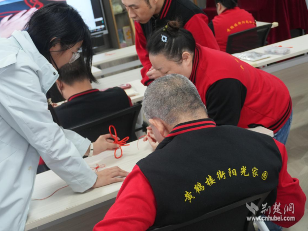 在中國結編織互動中,志愿者手把手教學員編織寓意吉祥的中國結。編織過程既鍛煉了手部協(xié)調能力,又通過互幫互助增進了彼此情誼,現(xiàn)場充滿歡聲笑語?;顒游猜?,青年志愿者為每位學員送上自己親手制作的中國結,傳遞美好祝福。