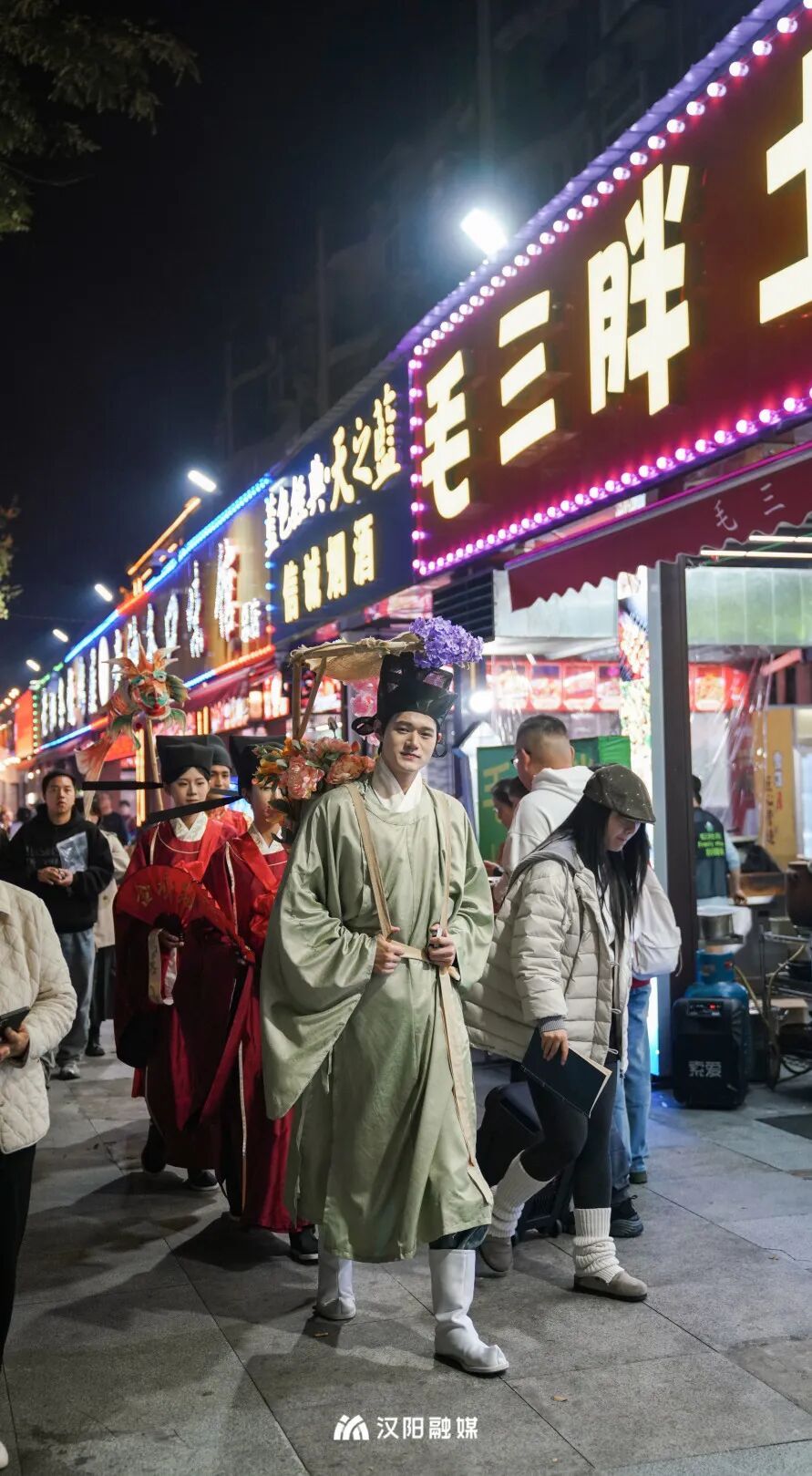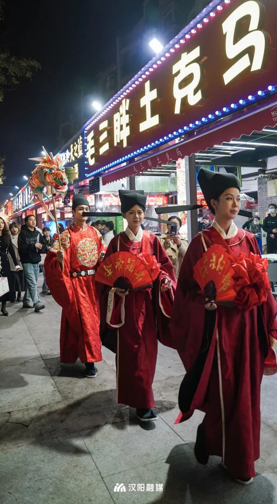 今晚,頭戴烏紗帽、身著飛魚服的“狀元郎”化身“首席引烤官”,帶領舉人秀才巡街互動,一句“客官骨骼清奇,必是吃貨轉世”逗樂全場。更勁爆的是,“知音漢陽”視頻號直播間狂撒福利:無敵燒烤、毛大佑、老油條等10家名店“限時霸王餐”線上直送,解鎖免費擼串的快樂!