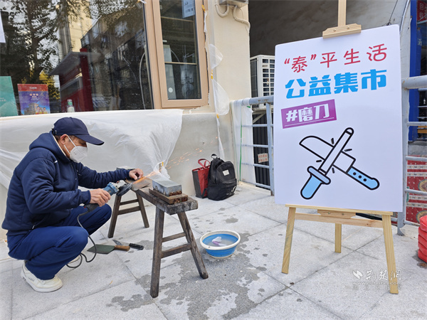 工會志愿者楊運(yùn)來為居民打磨刀具。 通訊員供圖