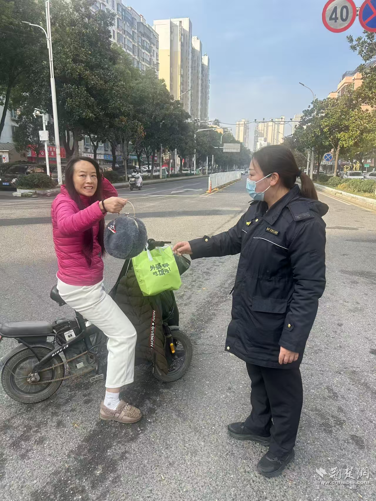 荊楚網(wǎng)(湖北日報網(wǎng))訊(記者 何婧 通訊員 周紅霞 黃慕輝)“太感謝你們了!這手機要是丟了,我的工作和聯(lián)系可就全耽誤了!”11月24日上午9點多,在東西湖區(qū)一清路與東吳大道交叉路口,一位女士從吳家山街道綜合執(zhí)法中心隊員張輝手中接過失而復得的手提包,激動得連聲道謝。