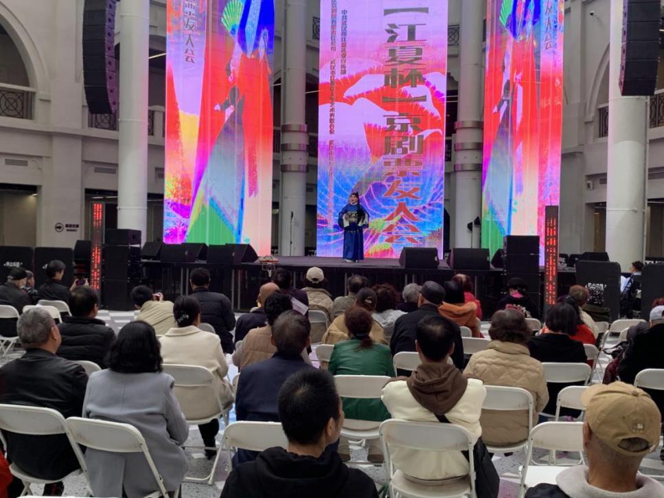 漢口民眾樂園這個作為武漢老牌文化地標的“戲窩子”,承載著幾代人的戲曲記憶。大會活動期間,這里先后舉辦了三場匯演,為戲迷和票友們搭建了展示與交流的平臺。在這里,來自長江流域、全國各省市區(qū)乃至海外華人票友社團的票友們各展所長,《貴妃醉酒》《霸王別姬》等經典選段輪番上演,唱腔婉轉悠揚,身段剛柔并濟,展現(xiàn)出業(yè)余票友的專業(yè)水準與對京劇藝術的赤誠熱愛。臺下戲迷們看得津津有味,時而掌聲雷動,時而喝彩叫好,現(xiàn)場沉浸在“戲迷與票友共情、經典與熱愛共鳴”的熱烈氛圍中。