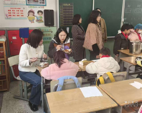 “兩代表一委員”陪同學生一同進餐。 通訊員供圖