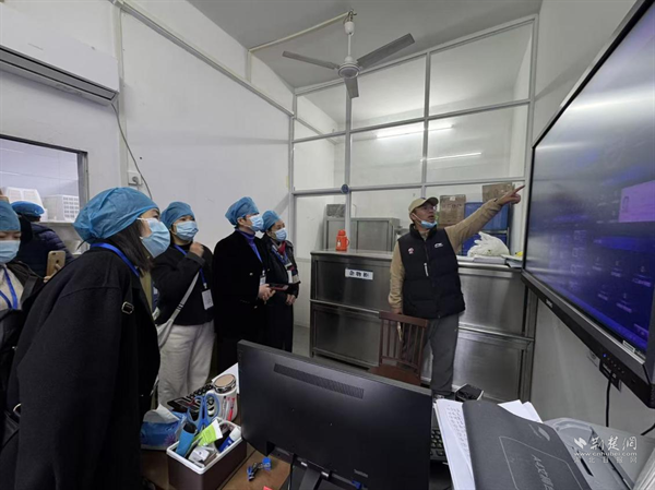 “兩代表一委員”查看食堂管理系統(tǒng)。 通訊員供圖