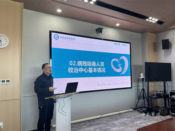 武漢市武東醫(yī)院院長(zhǎng)劉連忠致歡迎辭,簡(jiǎn)要介紹醫(yī)院發(fā)展歷程與核心業(yè)務(wù)。他強(qiáng)調(diào),戒毒工作關(guān)乎社會(huì)民生,希望以此次交流為契機(jī),在戒毒知識(shí)普及、心理問(wèn)題轉(zhuǎn)介、科研合作等方面,與專家搭建高效協(xié)作渠道。