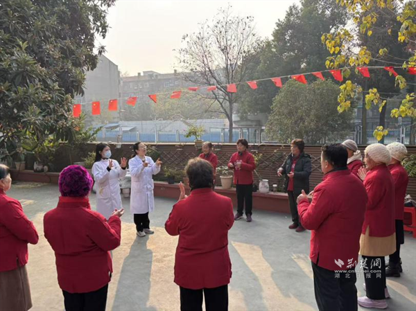 荊楚網(wǎng)(湖北日?qǐng)?bào)網(wǎng))訊(通訊員 熊志芳)“一、二、三、四……手指慢慢張開(kāi),不要用力過(guò)猛……”近日,武昌區(qū)珞珈山街道武大工學(xué)部老年服務(wù)中心的活動(dòng)室內(nèi),一群高齡老人正跟著節(jié)拍認(rèn)真練習(xí)手指舞,身旁身穿白大褂的醫(yī)護(hù)人員不時(shí)上前調(diào)整動(dòng)作、叮囑要領(lǐng)。這場(chǎng)將康復(fù)訓(xùn)練與新年籌備相結(jié)合的“醫(yī)養(yǎng)結(jié)合”特色活動(dòng),讓老人們?cè)陟`動(dòng)的指尖舞動(dòng)中強(qiáng)健體魄,重拾健康與自信。