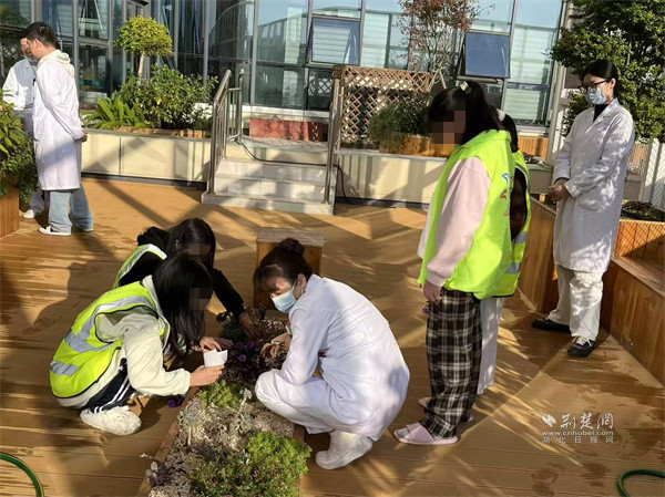 據介紹,該可食園藝治療項目自2019年起,由醫(yī)院聯合華中科技大學建筑與城市規(guī)劃學院共建,圍繞“視、聽、嗅、觸、味”五感體驗設計系列活動,涵蓋薄荷扦插、蔬菜盆栽、葉壓畫、果蔬沙拉制作等豐富內容。