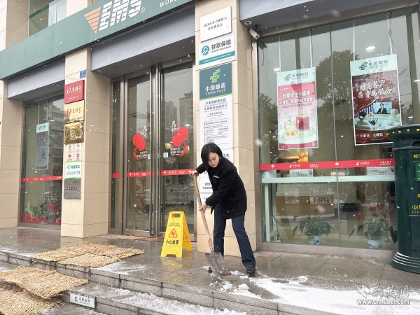 中國(guó)郵政武昌區(qū)分公司各網(wǎng)點(diǎn)員工清掃門前冰雪。 通訊員供圖