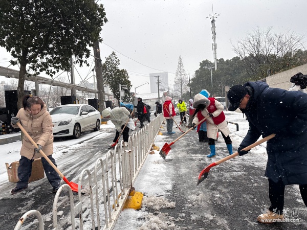 面對(duì)雪情,街道迅速啟動(dòng)應(yīng)急響應(yīng)機(jī)制,提前統(tǒng)籌物資與人員,確保除雪作業(yè)高效有序開展?!奥勓┒鴦?dòng)”成為街道上下的共同行動(dòng)。志愿服務(wù)力量第一時(shí)間集結(jié),奔赴除雪一線,開展撒鹽除冰、積雪清運(yùn)、防滑墊鋪設(shè)等工作。在寒風(fēng)凜冽的街頭,一抹抹“志愿紅”格外醒目,他們用雙手鏟出一條條平安通道,在寒冬中筑起溫暖而堅(jiān)實(shí)的安全防線,傳遞著守望相助、共建共享的溫情。