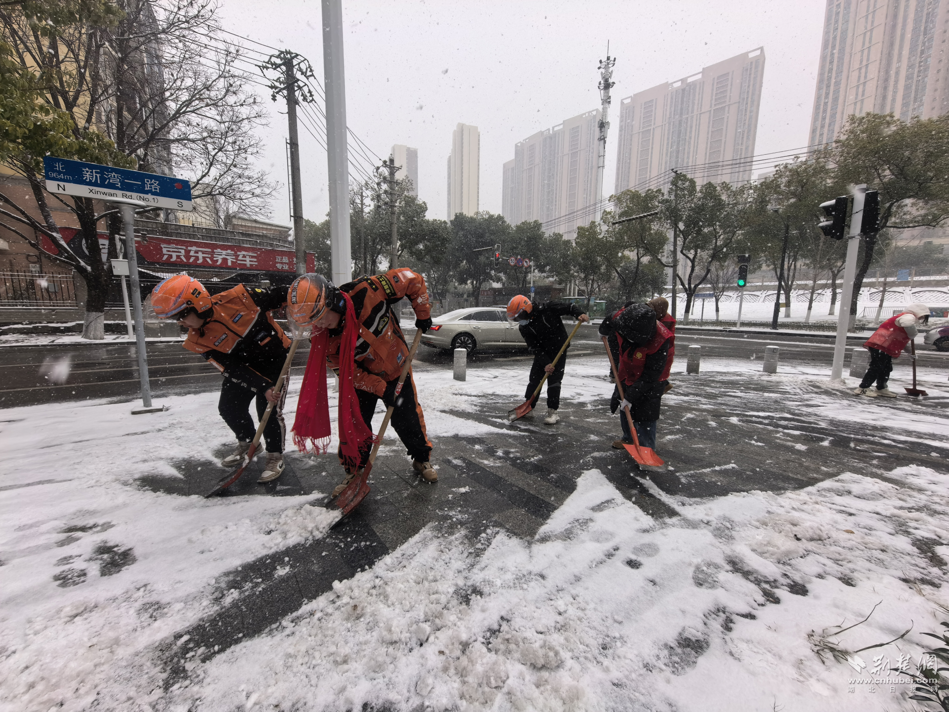 一杯熱茶、一鏟積雪、一頓熱飯。冰雪之中,江漢區(qū)的新就業(yè)群體既被看見(jiàn)、被關(guān)懷,也被信任、被動(dòng)員,逐步從“服務(wù)對(duì)象”轉(zhuǎn)變?yōu)椤爸卫砘锇椤薄K麄兪煜さ缆?、貼近一線,成為城市應(yīng)急響應(yīng)中反應(yīng)最快、覆蓋最廣的一支力量。