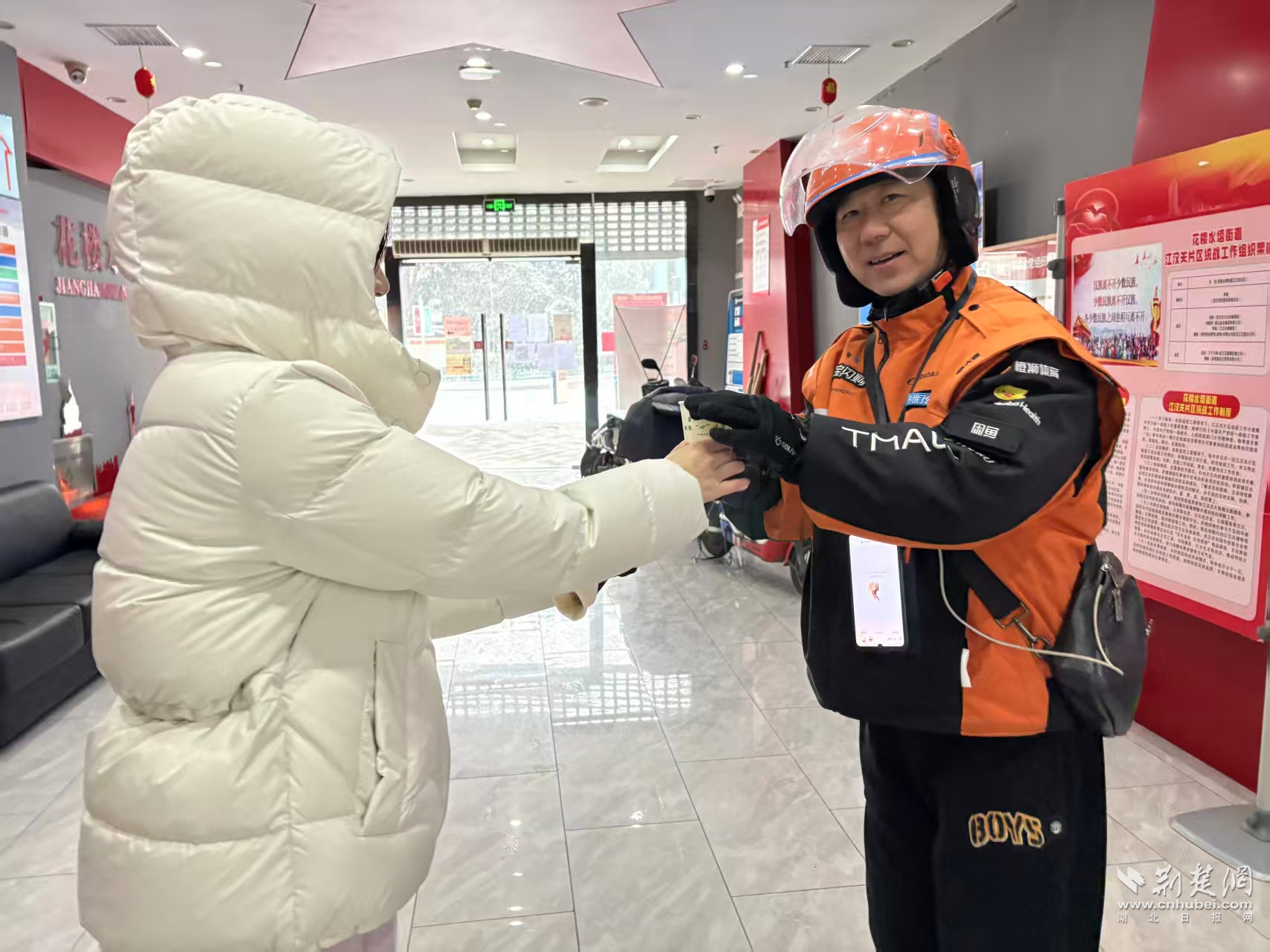 寒潮來(lái)臨前后,江漢區(qū)各街道依托江城驛站、愛(ài)心商戶和“小哥食堂”等服務(wù)陣地,迅速將取暖、飲水、熱食等保障送到一線。