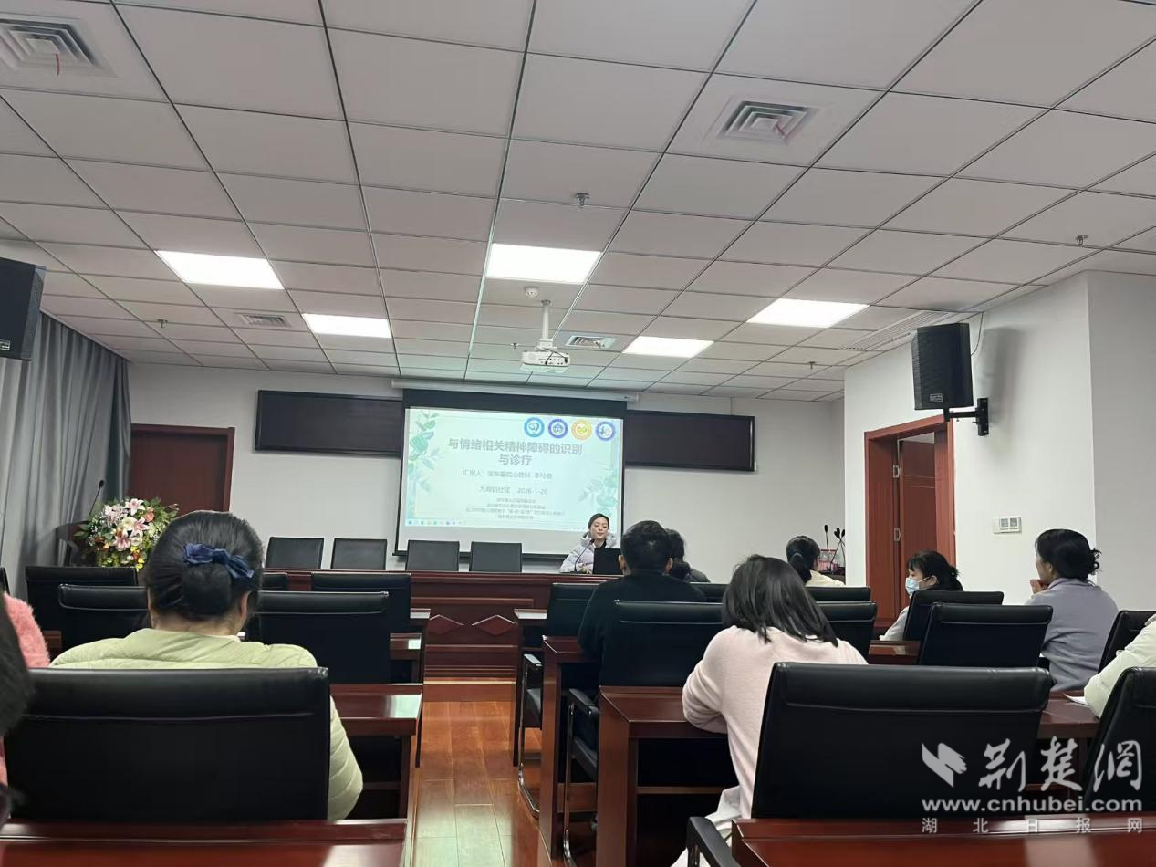 荊楚網(湖北日報網)訊(通訊員 孫琳 李玲霞)1月26日,武漢市武東醫(yī)院精神障礙防治辦公室主治醫(yī)師李玲霞,下沉至東湖高新區(qū)九峰街社區(qū)衛(wèi)生服務中心開展精神障礙防治專題講座,該中心60余名基層醫(yī)務工作者參與學習。