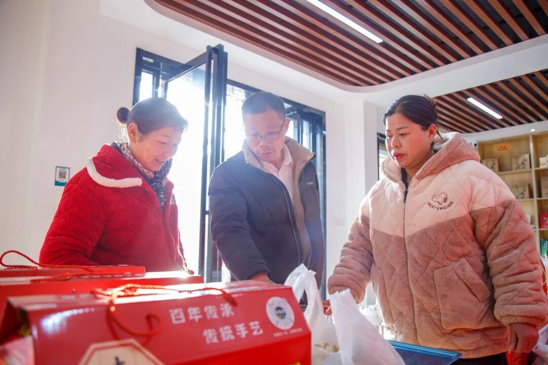 除了優(yōu)質(zhì)選品,在運營模式上,基地還采用線上線下雙輪驅(qū)動。線上以“祁家灣優(yōu)品”抖音直播間為主要陣地,組建了由5名村“兩委”干部構(gòu)成的直播團隊,定期開展直播帶貨,直播場景覆蓋生產(chǎn)現(xiàn)場等多種實地環(huán)境。線下則通過實體展示館進行產(chǎn)品體驗、零售以及面向企業(yè)與社區(qū)的團購批發(fā)業(yè)務(wù),形成銷售閉環(huán)。
