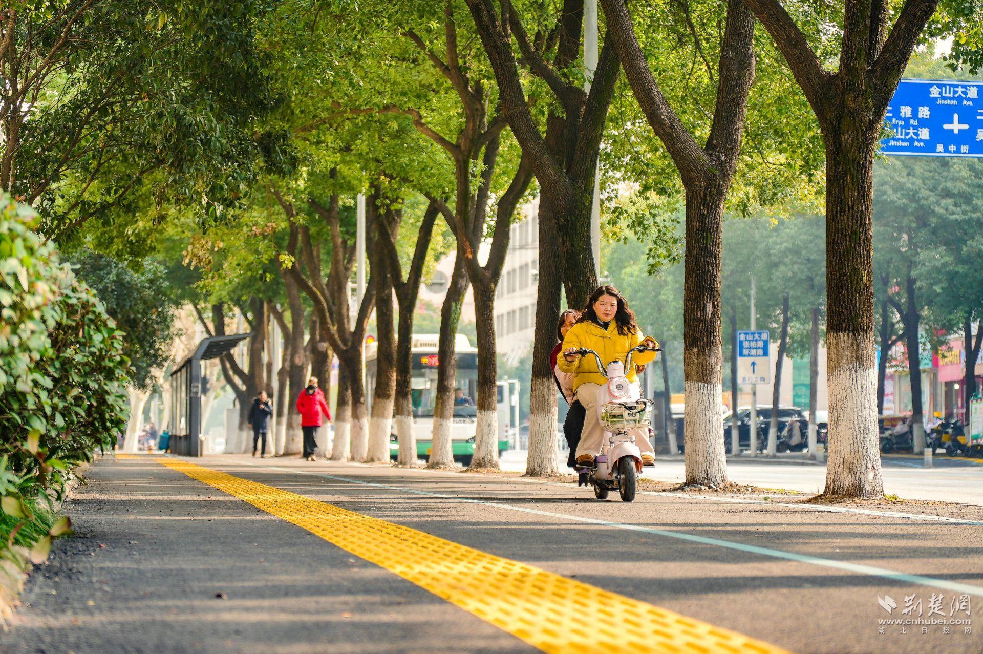 另一個(gè)明顯變化是,人行道旁多出了一條清晰的非機(jī)動(dòng)車道。過去,吳中街沒有專門的非機(jī)動(dòng)車道,人車混行存在隱患。現(xiàn)在,“人非共面”的模式讓騎行與步行各自有序,盲道也同步更新,安全系數(shù)大幅提升。