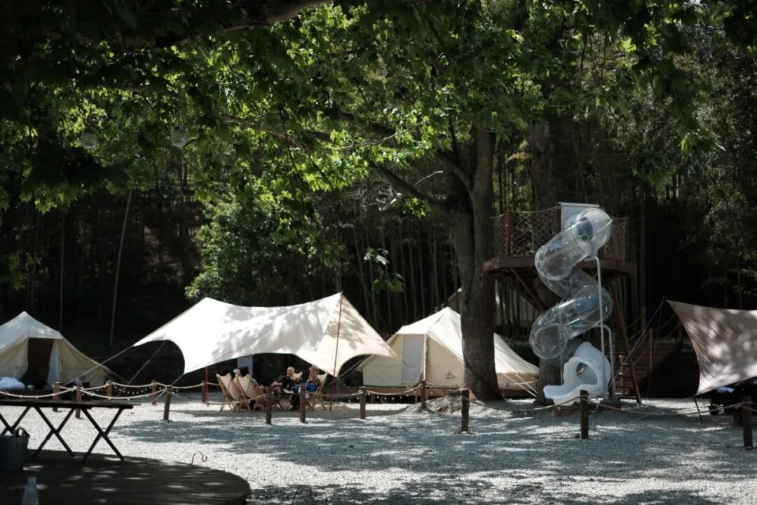 自帶空調(diào)的豪華帳篷,甩手就能入?。贿€可以體驗多種戶外休閑項目,如射箭、滑滑梯、秋千、垂釣溯溪等,還有不定期音樂會、露天電影等各類主題活動。