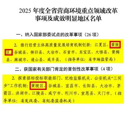 近日,湖北省優(yōu)化營商環(huán)境領(lǐng)導(dǎo)小組對(duì)2025年度全省優(yōu)化營商環(huán)境重點(diǎn)領(lǐng)域改革事項(xiàng)及成效明顯地區(qū)進(jìn)行通報(bào)表揚(yáng)。其中,黃陂政務(wù)服務(wù)領(lǐng)域兩項(xiàng)創(chuàng)新改革納入國家部委試點(diǎn),獲國家有關(guān)部門肯定,彰顯區(qū)域改革擔(dān)當(dāng)與服務(wù)實(shí)力。