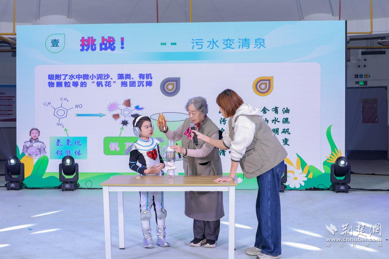 演出結(jié)束后,科普專家熊永紅教授和劉漢生老師開展趣味小論壇,進一步延伸劇中知識點。熊教授現(xiàn)場復刻“污水變清水”實驗,讓孩子們直觀感受凈水原理;劉老師則結(jié)合江漢湖泊生態(tài)解答“江漢魚是否只屬于江漢區(qū)”的問題,并分享專屬繪本,引導孩子在互動中理解科學。