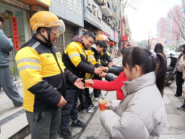 隨后,孩子們化身“小小志愿者”,將一杯杯熱騰騰的姜茶送給驛站里的外賣騎手、快遞員等新就業(yè)群體,用實際行動踐行諾言,傳遞出書香少年的責(zé)任擔當。