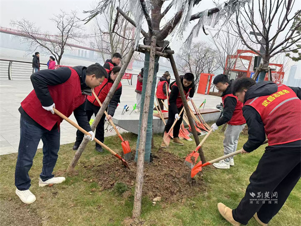 理論學(xué)習(xí)終要落地于實(shí)踐行動。宣講結(jié)束后,志愿者們手持夾鉗、垃圾袋等工具,對長江岸邊的垃圾、雜草及水面漂浮物開展地毯式清理,不放過任何衛(wèi)生死角,用雙手讓雜亂的灘涂恢復(fù)整潔開闊。恰逢植樹節(jié)將至,志愿者們又揮鍬鏟土、扶苗圍堰、提水澆灌,在指定區(qū)域有序栽種新苗,為長江岸線增添一抹新綠,以實(shí)際行動厚植生態(tài)底色,踐行綠色發(fā)展理念。