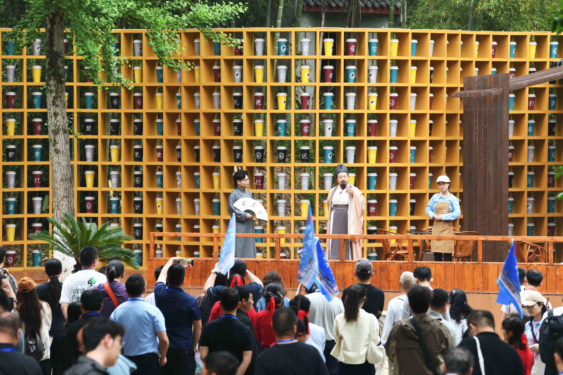 4月26日晚,三國赤壁古戰(zhàn)場景區(qū),《赤壁·借東風(fēng)》實(shí)景演藝劇全球首演。一名“說書人”用現(xiàn)代人的口吻,串起一部三國與現(xiàn)代的穿越劇:舞臺(tái)上,演員、道具、光影重現(xiàn)“草船借箭”“苦肉計(jì)”“空城計(jì)”等歷史典故;看臺(tái)上,游客化身將士,隨劇情節(jié)奏拍打赤壁非遺——腳盆鼓(相傳為孫劉聯(lián)軍赤壁之戰(zhàn)鼓舞士氣的樂器)……現(xiàn)場,觀眾與演員深度融合,沉浸式體驗(yàn)三國英雄氣概,仿佛一場跨越千年的對話。