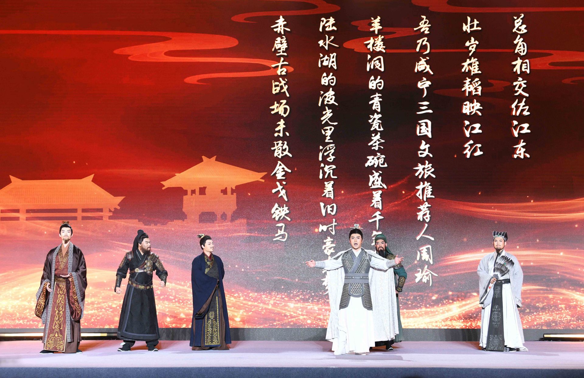 “三國六城,今日結(jié)盟!與君共同開啟,荊楚三國文化之旅。”啟動(dòng)式上,身著古裝的文旅推薦官,化身三國英雄劉備、關(guān)羽、張飛、諸葛亮、孫權(quán)、周瑜等,穿越歷史時(shí)空,分別代表武漢、荊州、宜昌、襄陽、鄂州、咸寧對外推介各地三國旅游景點(diǎn)和線路。