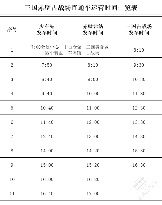 線路:抵站后可選擇旅游直通車(chē)或打車(chē)至三國(guó)赤壁古戰(zhàn)場(chǎng)