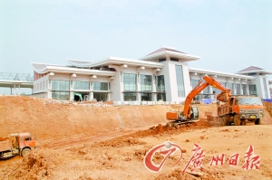 車站仿三國(guó)建筑 赤壁站,就在市政府背后。10月27日,映入記者眼簾的是一個(gè)忙碌的建筑工地。
