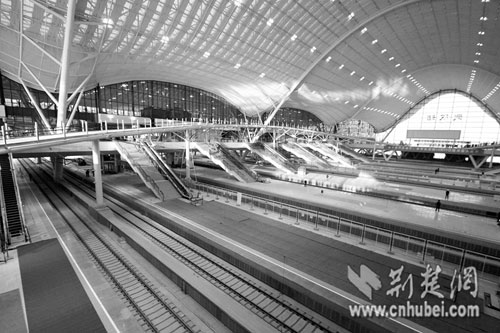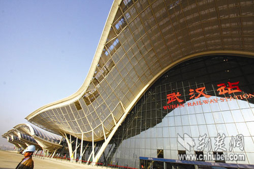 荊楚網(wǎng)消息 (楚天金報記者譚新杰 通訊員吳志華) 日前,武廣客專北端的起點站——武漢火車站已正式“掛牌”。自從2006年9月開工以來,這座飄逸的“鋼鐵巨鵬”,便淹沒在鏗鏘的建設聲中,一般人也很難進入站內一看究竟,只能遠遠地看著它的雙翼逐漸成形,雄風漸展。這種結構用鋼量超過鳥巢的偉大建筑,也被蒙上了一層神秘的面紗。