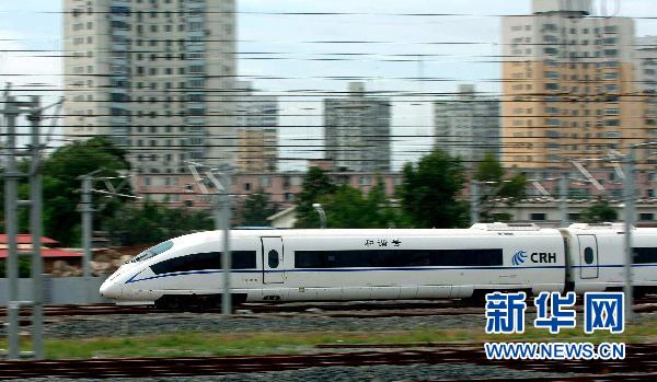 這是我國(guó)第一條擁有完全自主知識(shí)產(chǎn)權(quán)、具備世界一流水平的城際高速鐵路——京津城際高速鐵路的列車從北京南站駛出(2008年8月1日攝)。新華社記者公磊攝
