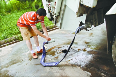 工人師傅說,改裝后,每輛車可以排出至少70%的水分。今后轉(zhuǎn)運(yùn)垃圾時(shí),就近找個(gè)下水道,可將垃圾擠干后再運(yùn),不僅解決隨地“大小便”問題,還能增加運(yùn)輸量,一舉多得。