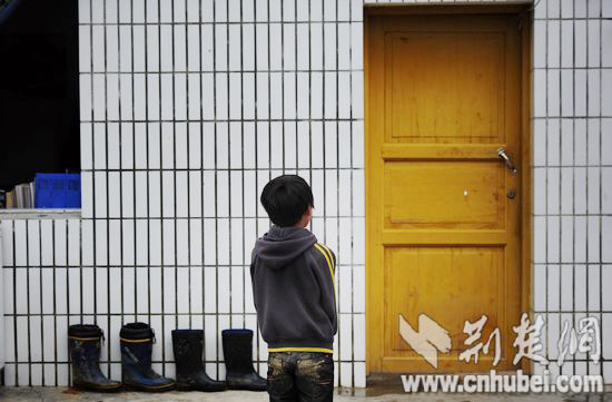 趙曉曉宿舍前,二年級(jí)學(xué)生楊銀松默默站著,房門緊閉。