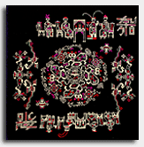湖北銀飾以白銀為原料,純度高,久用耐磨,不易腐蝕,光澤奪目,極顯高貴;一般為富裕人家的飾物,常有耳墜、戒指、手鐲、發(fā)簪、手鏈等。最為精彩的是帽飾人物,常用高浮雕、淺浮雕、鑲嵌和鏤空的表現(xiàn)手法,圖案多為龍鳳吉祥、長命富貴、麒麟送子等。制…… 詳細(xì) —————————————————