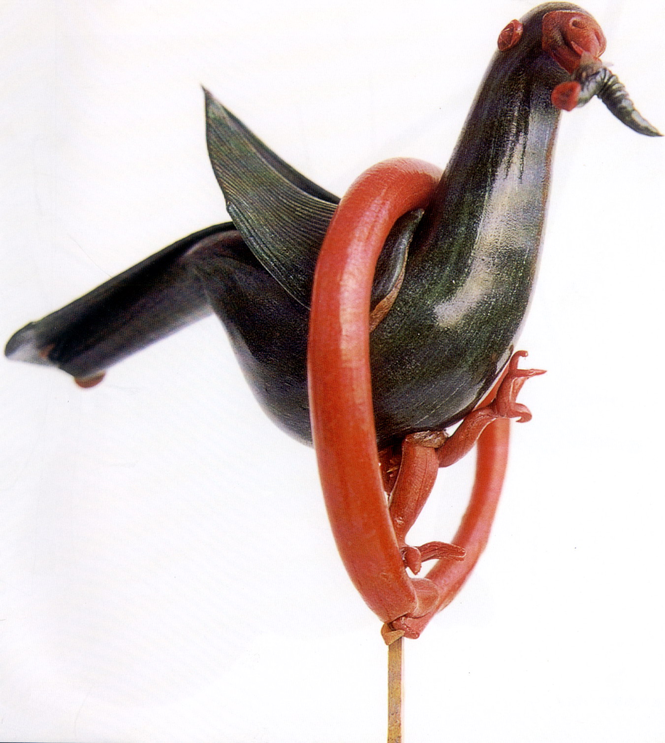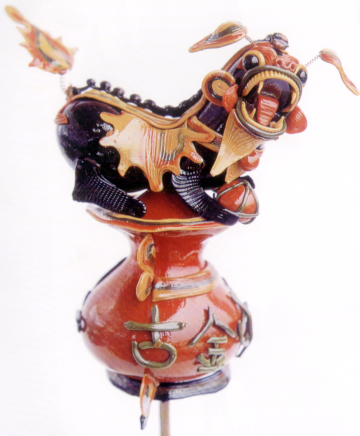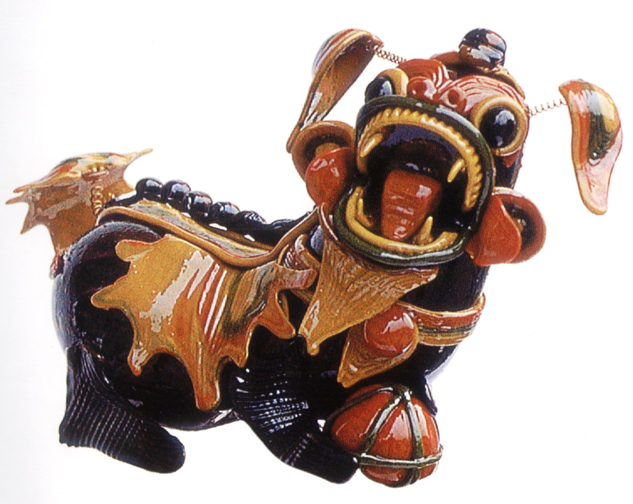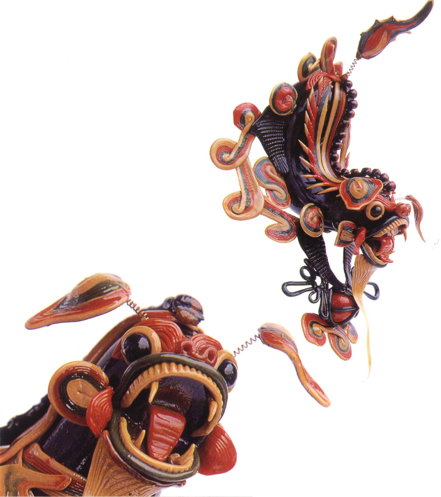 糖塑,俗稱吹糖,在湖北遍及全省,尤以天門最為突出。糖塑之所以贏得人們的喜愛,是因為它獨具特色:1、原料可塑性強:麥芽糖是糖塑的主要原料,加熱后變軟,比面塑更具可塑性,既可吹成薄而亮的各類造型,又可拉成粗細不同的糖絲。捏成不同形狀的配件,易粘且牢固;2、造型神形兼?zhèn)洌禾撬艿募妓囍饕Ψ蛟凇按怠鄙,一塊糖坯在藝人手中,邊吹邊捏,再通過搓、壓、挑、剪等手段,加上輔助的小鐵絲,少則幾分鐘,多則半小時,一件作品就完成了;3、色彩和諧醒目:麥芽糖加溫變軟加入紅、綠、黃、黑四種色素,根據(jù)需要又可調(diào)和成數(shù)十種復色,色彩響亮和諧;4、肌理變化豐富是糖塑獨具的特點:在糖塑中,附件變化萬千的肌理又與主體吹成光滑的表面形成鮮明的對比,顯得更加豐富耐看;5、“活”的部件是糖塑的又一特點:有的部件裝上自制的鋼絲彈簧,一經(jīng)拿在手中,部件都“活”起來了,更具生氣。